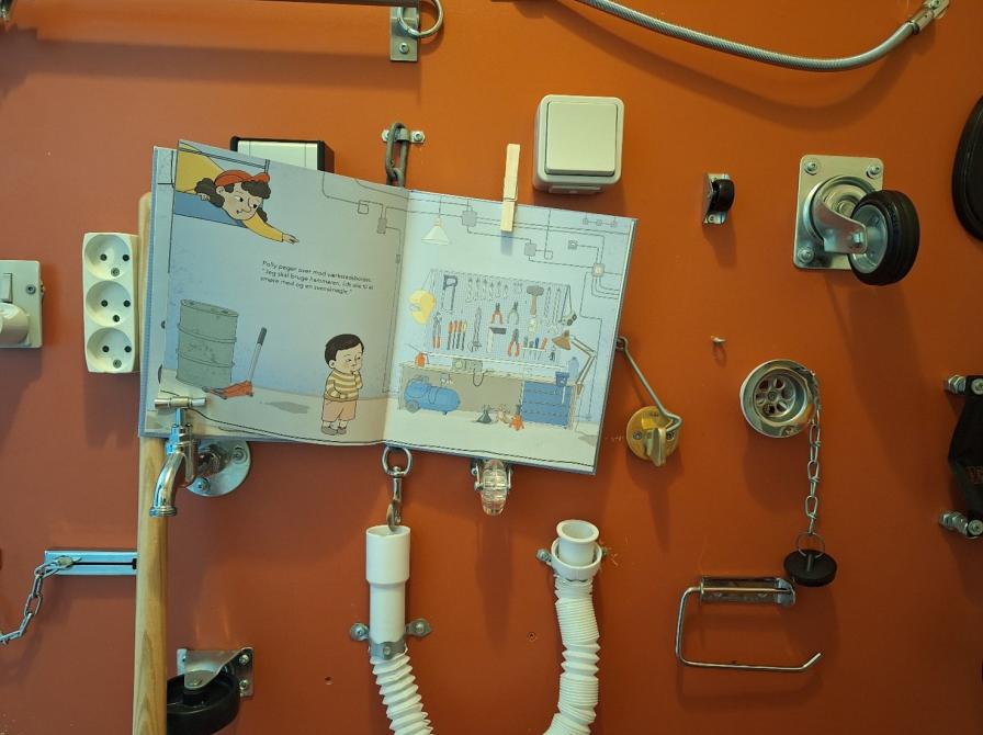 Her på biblioteket elsker vi maskiner, værktøj og dingenoter. Derfor er vi også helt vilde med Pollys værksted. Her kan man komme, hvis man har noget, der skal fikses. Så hjælper Polly med at finde problemet og hun har altid det rigtige værktøj.
