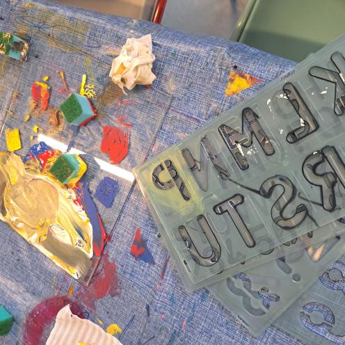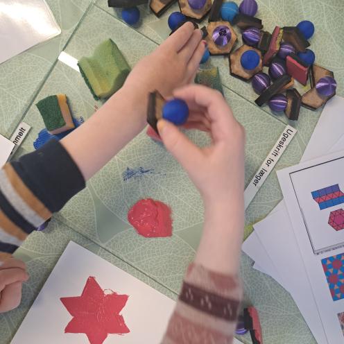 Af forskellige trykteknikker kunne familierne afprøve kræfter med tangram-tryk, som er et slags geometrisk puslespil, hvor man med forskellige polygoner kunne bygge sjove og farverige (påske)dyr.