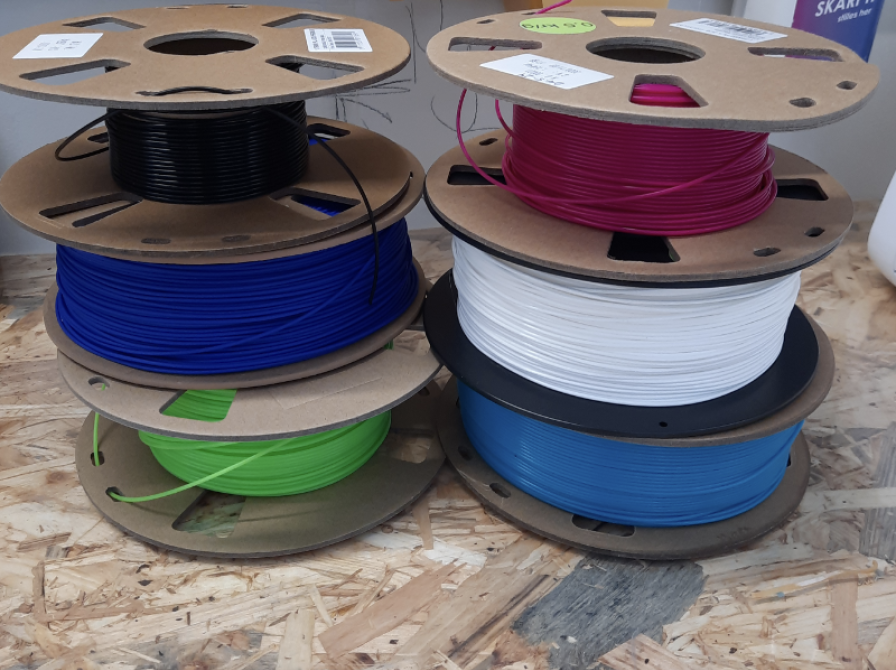 Som et offentligt og åbent makerspace arbejder vi kun med filamenttyper, der er sikre at bruge uden specialudsugning. Derfor tilbyder vi kun PLA og PETG.